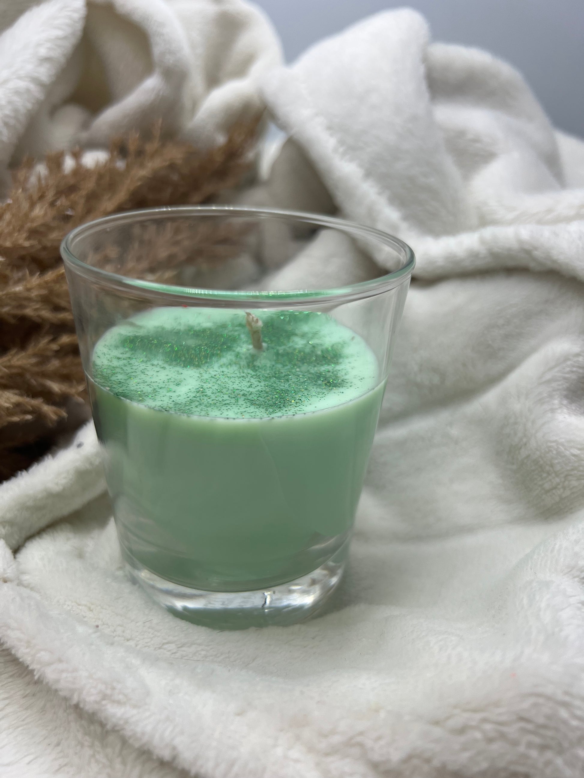 Diese Kerze ist handgefertigt und besteht aus Soya-Wachs.