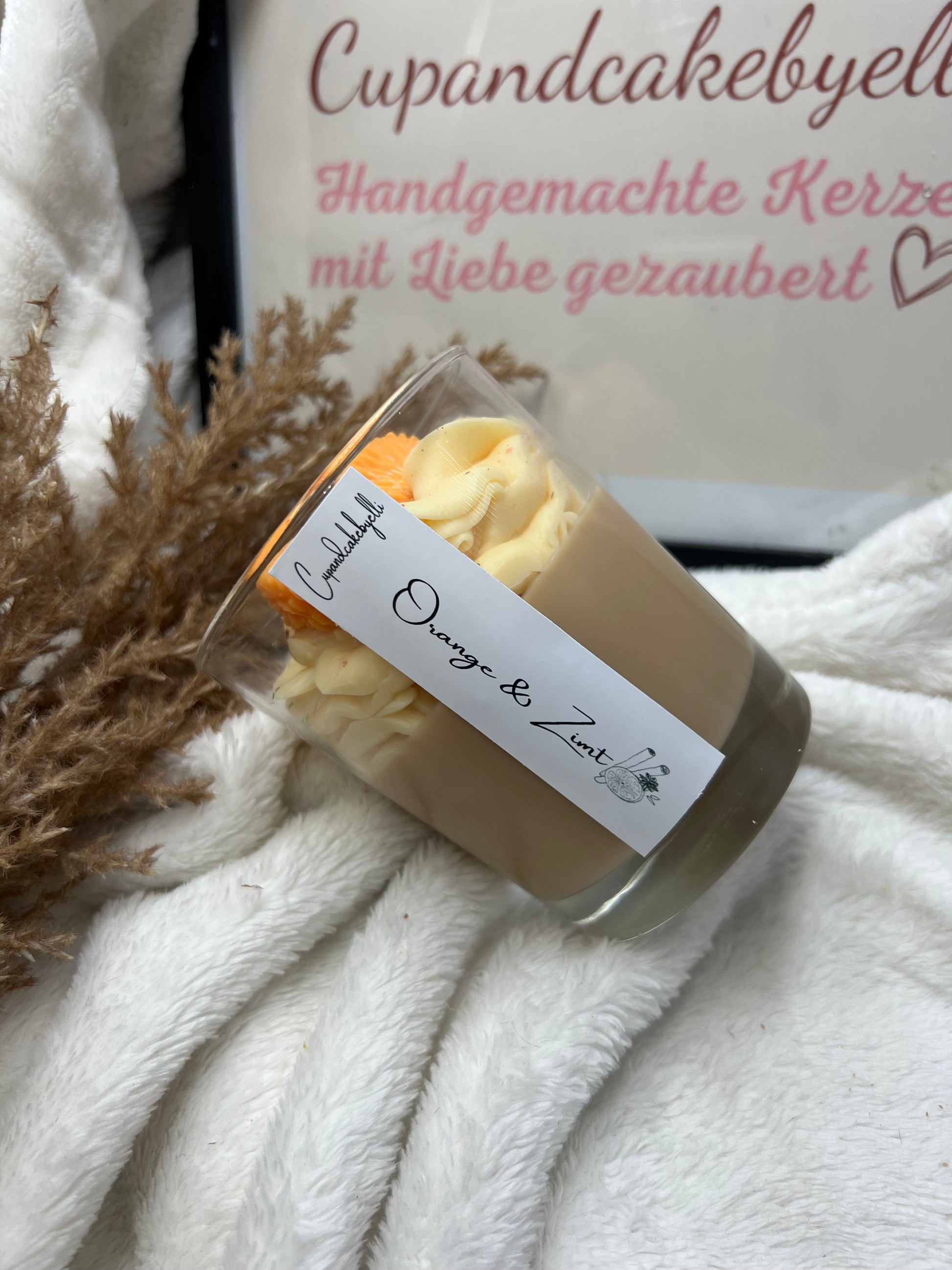 Diese Kerze ist handgefertigt und besteht aus Soya-Wachs.